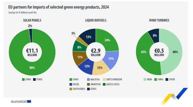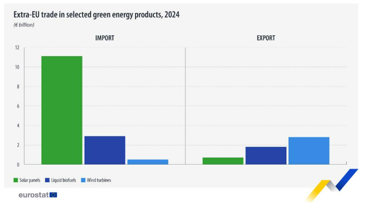 Figura 1. Balanza comercial de la UE en 2024 respecto a las energías verdes. Fuente: Eurostat