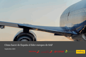 El informe ‘¿Cómo hacer de España el líder europeo de SAF?’ recoge un plan de 16 medidas para posicionar a España como el referente europeo en producción y consumo de combustibles sostenibles de aviación (SAF). Este biocombustible es capaz de reducir las emisiones de CO₂ más de un 80 % frente al queroseno convencional, además de ser un proyecto estratégico de país para la transición energética y la reindustrialización de los territorios.